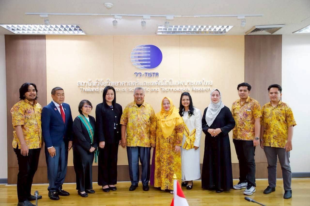 ดร.ปริยะดา วิสุทธิแพทย์ รองผู้ว่าการบริหาร สถาบันวิจัยวิทยาศาสตร์และเทคโนโลยีแห่งประเทศไทย (วว.) กระทรวงการอุดมศึกษา วิทยาศาสตร์ วิจัยและนวัตกรรม (อว.) พร้อมคณะผู้บริหาร นักวิจัย บุคลากร วว. ร่วมให้การต้อนรับ Raja Gontar IV (Dr. Drs. H. Syafri Fadillah Marpaung, SE, MPd.) และคณะผู้แทนจากประเทศอินโดนีเซีย ในโอกาสเข้าเยี่ยมชมและหารือความร่วมมือทางวิชาการ ในวันที่ 30 มีนาคม 2569 ณ ห้องประชุม กวท. ชั้น 8 วว. เทคโนธานี คลองห้า จ.ปทุมธานี
