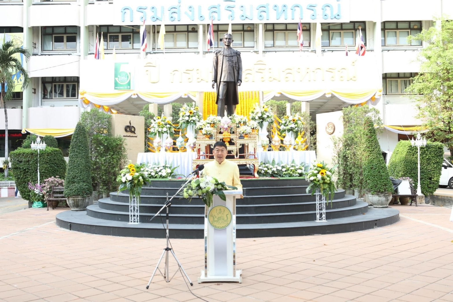 โอกาสนี้ อธิบดีฯ ได้กล่าวสดุดีพระราชวรวงศ์เธอ กรมหมื่นพิทยาลงกรณ์ พระบิดาแห่งการสหกรณ์ไทย ว่า ด้วยพระปรีชาสามารถที่ทรงมีคุณูปการต่อระบบสหกรณ์ในประเทศไทย ส่งผลให้เกษตรกรและสมาชิกสหกรณ์พ้นจากภาวะหนี้สิน มีทุนในการประกอบอาชีพ มีความเป็นอยู่ที่พอมีพอกิน ก่อให้เกิดผลดีในการพัฒนาประเทศ ซึ่งแสดงให้เห็นถึงพระเกียรติคุณอันยิ่งใหญ่ที่ควรค่าต่อการน้อมรำลึกถึง จึงทรงได้รับการยกย่องจากขบวนการสหกรณ์ไทยว่าทรงเป็น พระบิดาแห่งการสหกรณ์ไทย ประกอบกับวันนี้เป็นโอกาสครบรอบ 108 ปี สหกรณ์ไทย เพื่อเป็นการน้อมระลึกถึง พระกรุณาธิคุณของพระองค์ท่าน พวกเราจึงมาชุมนุมกันเพื่อแสดงออกถึงพลังความสามัคคี ความเป็นน้ำหนึ่งใจเดียวกันของขบวนการสหกรณ์ไทย จึงขอตั้งปณิธานว่า จะมุ่งมั่นในการพัฒนาส่งเสริมสหกรณ์ ด้วยนวัตกรรมและหลักธรรมาภิบาล เพื่อสร้างความเข้มแข็งและเติบโตอย่างยั่งยืน โดยสนับสนุนการจัดตั้ง ตลอดจนพัฒนาการบริหารจัดการของสหกรณ์และกลุ่มเกษตรกร ส่งเสริมให้สมาชิกมีส่วนร่วมในการขับเคลื่อนการดำเนินงานสหกรณ์อย่างมีคุณภาพ เที่ยงตรง โปร่งใส และมีธรรมาภิบาล มีการเชื่อมโยงเครือข่ายระหว่างสหกรณ์ด้วยกัน รวมทั้งส่งเสริมและพัฒนาบุคลากรในระบบสหกรณ์ ให้มีสมรรถนะสูงในการสร้างสรรค์ พัฒนาสหกรณ์ และกลุ่มเกษตรกรซึ่งจะนำไปสู่การพัฒนาองค์กรให้มีความเข้มแข็ง และมีความยั่งยืน อันจะเป็นผลดีต่อการพัฒนาประเทศชาติโดยรวมสืบไป