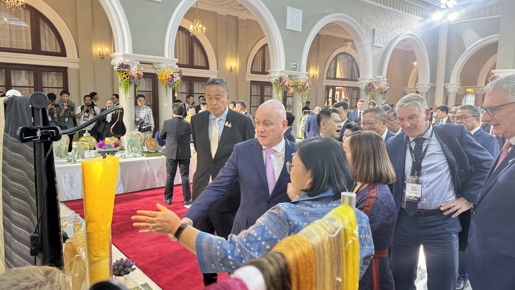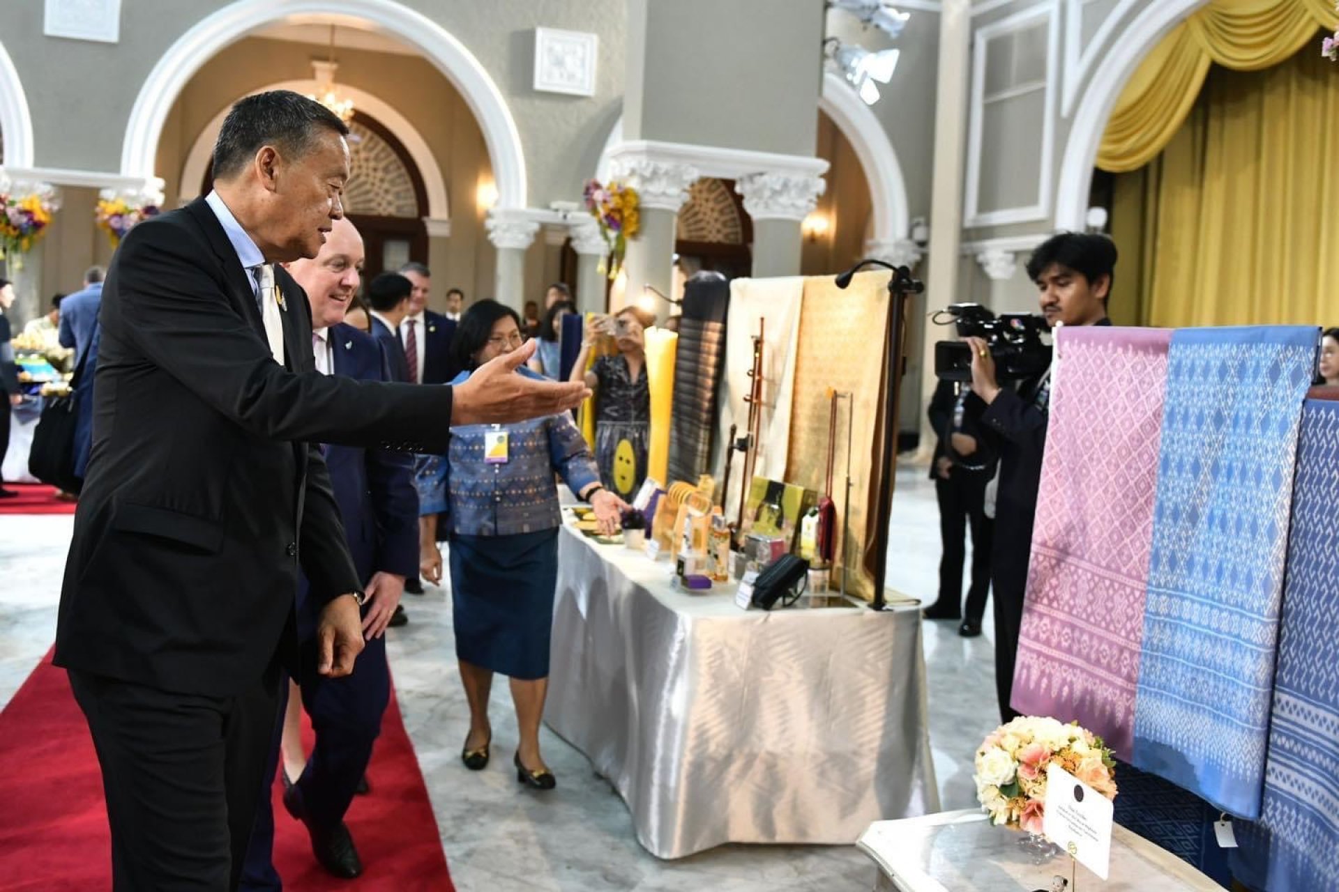 หม่อนไหมจัดแสดงนิทรรศการด้านหม่อนไหมต้อนรับนายคริสโตเฟอร์ ลักซอน นายกรัฐมนตรีนิวซีแลนด์ ณ บริเวณโถงกลาง ตึกสันติไมตรี ทำเนียบรัฐบาล