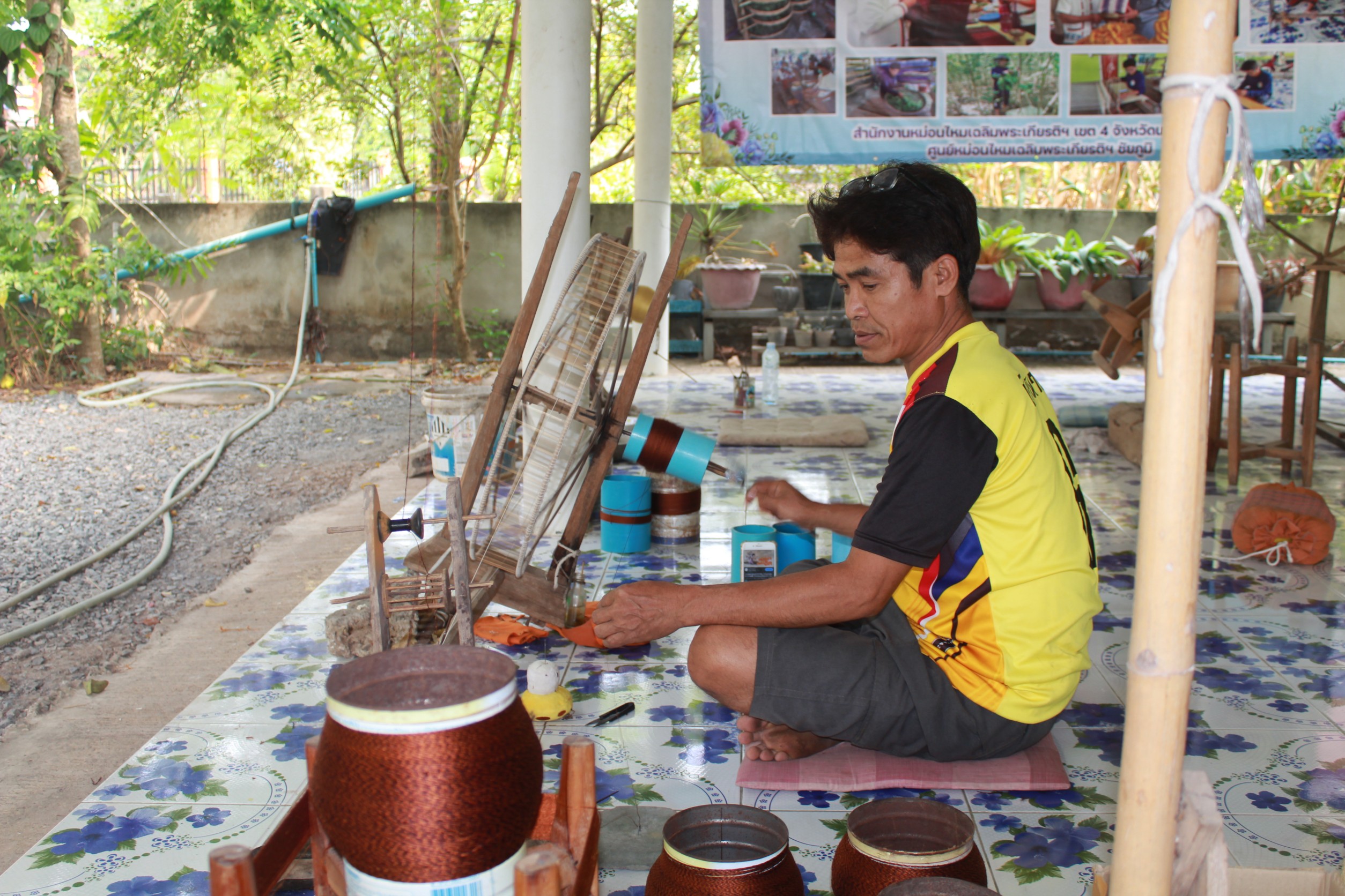 นอกจากนี้ก็คิดต่อพัฒนานำเทคโนโลยีเข้ามาช่วยในการสาวไหม เช่น การติดมอเตอร์ที่เครื่องสาวไหมทำให้สาวไหมได้เร็วขึ้นก่อนดักแด้จะกลายเป็นผีเสื้อออกมาเจาะรังไหมทำให้เสียหาย และได้เส้นไหมที่มีคุณภาพ มีความสวยงาม มีขนาดสม่ำเสมอ สะอาดและมีสีสันสดใส เพราะใช้สีจากวัสดุธรรมชาติในการย้อมเส้นไหมเช่น ใช้ใบไม้และเปลือกไม้ในท้องถิ่นโดยไม่มีการตัดหรือทำลายต้นไม้ เมื่อนำไปทอจึงออกมาเป็นผ้าไหมที่สวยงามและมีคุณภาพ