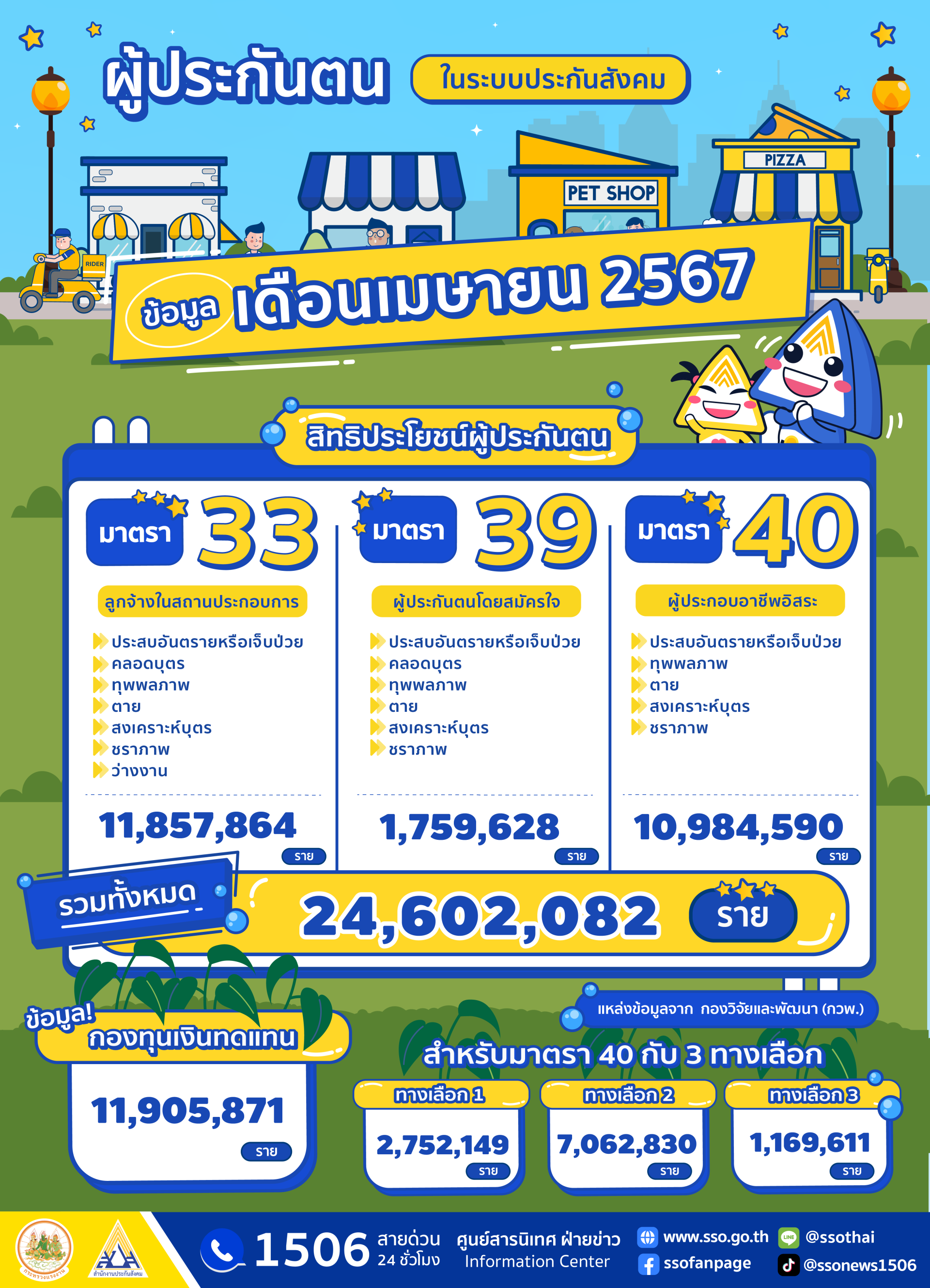 ผู้ประกันตนในระบบประกันสังคมทั่วประเทศ เดือนเมษายน 67 กว่า 24.6 ล้านคน