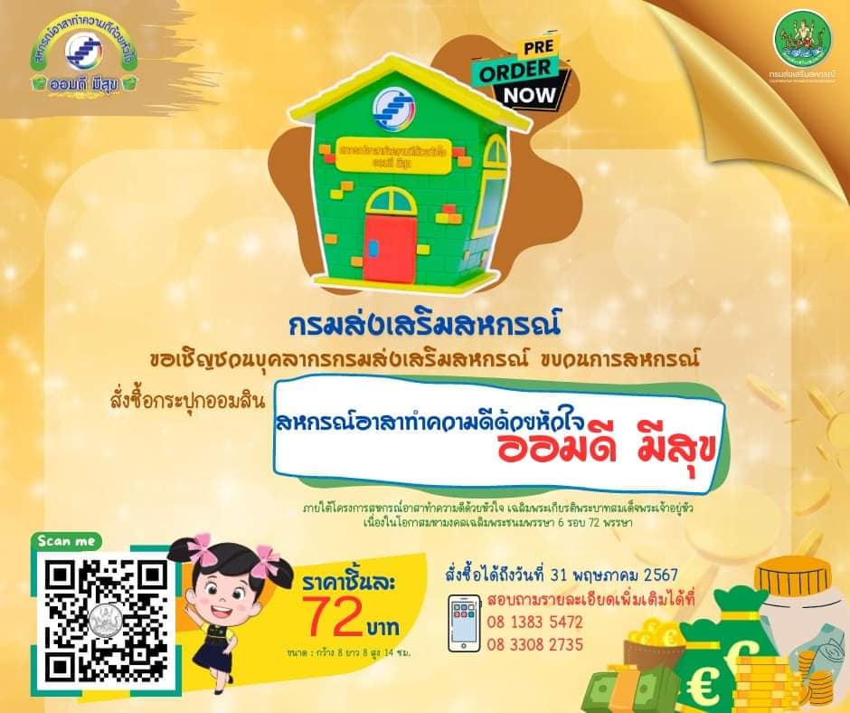 กรมส่งเสริมสหกรณ์ เชิญชวนซื้อกระปุกออมสินเพื่อการออมสั่งซื้อกระปุกออมสิน "สหกรณ์อาสาทำดีด้วยหัวใจ ออมดี มีสุข"