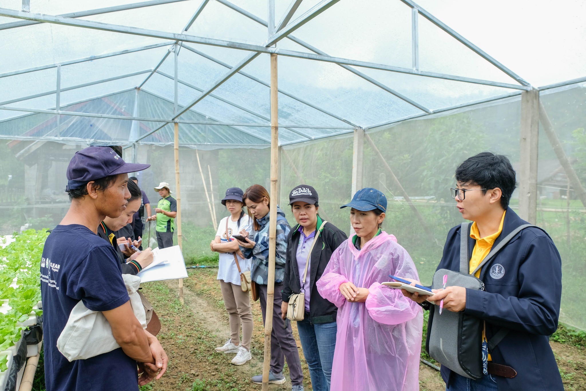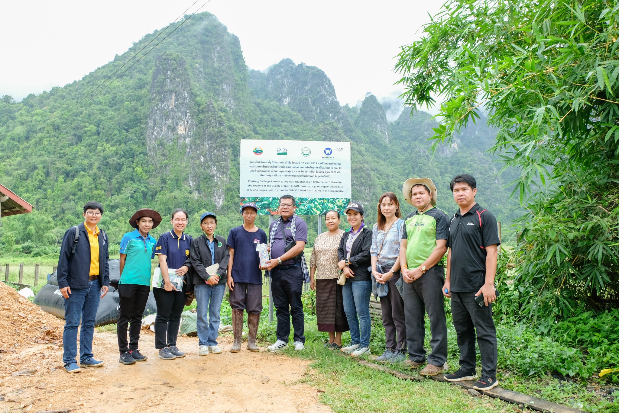 ต่อมา คณะนักวิชาการด้านอารักขาพืชได้ลงพื้นที่ศึกษาดูงาน ณ กลุ่มปลูกผักกะหล่ำปลีบ้านผาตั้ง เมืองวังเวียง (Vang Vieng) แขวงเวียงจันทน์ (Vientiane Province) โดยมี นายผุย เพชรบัวลม ประธานกลุ่มฯ ร่วมให้ข้อมูล โดยการจัดตั้งกลุ่ม มีวัตถุประสงค์เพื่อรวมตัวกันผลิตพืชผัก ได้แก่ กะหล่ำปลี มะเขือ พริก ผักชี หอมแบ่ง ผักชี ข้าวโพด ในช่วงที่เว้นว่างหลังจากเก็บเกี่ยวข้าวนาปีแล้ว ปัจจุบันกลุ่มมีสมาชิกจำนวน 25 ครัวเรือน ทำการเกษตรตามหลักการทำเกษตรดีที่เหมาะสม (GAP) และได้รับการสนับสนุนงบประมาณดำเนินโครงการ CLEAN Project จาก WINROCK International ให้กับกลุ่ม เพื่อสร้างโรงเรือนปลูกผักแบบใช้ดินและปลูกแบบไร้ดินแบบประยุกต์ ติดตั้งระบบน้ำ และสร้าง Biogas Unit สำหรับผลิตปุ๋ยชีวภาพคุณภาพสูงจากเศษวัสดุในแปลงปลูก เพื่อพัฒนาคุณภาพการผลิตพืชผักและการเกษตรที่ปลอดภัยและเป็นมิตรกับสิ่งแวดล้อม และได้รับการถ่ายทอดความรู้จากกรมปลูกฝัง ด้านการทำสารสกัดสมุนไพรสำหรับจัดการศัตรูพืช การใช้เชื้อราไตรโครเดอร์มาควบคุมโรค ซึ่งขณะนี้อยู่ระหว่างส่งเสริมให้เกษตรกรยอมรับเทคโนโลยีดังกล่าว และกรมส่งเสริมการเกษตรในฐานะผู้ติดตามผลการดำเนินงานความร่วมมือตามโครงการบริหารจัดการศัตรูพืชแบบผสมผสาน (IPM) ได้ให้คำแนะนำเกี่ยวกับการจัดการศัตรูพืชโดยชีววิธีและการรักษาสมดุลของระบบนิเวศทางการเกษตร รวมถึงได้วิเคราะห์พื้นที่และเห็นว่ามีศักยภาพเหมาะสมกับการผลิตพืชมูลค่าสูงอย่างมาก จึงได้ให้คำแนะนำกับทางกลุ่มฯ เพิ่มเติมเกี่ยวกับการปลูกพืชสินค้าเกษตรมูลค่าสูง เช่น กาแฟ อะโวคาโด องุ่น พืชผักเมืองหนาว เป็นทางเลือกสำหรับเกษตรกรและเจ้าหน้าที่ของกรมปลูกฝังพิจารณา และได้เน้นย้ำถึงกระบวนการผลิตที่ควรดำเนินการควบคู่กับการจัดการศัตรูพืชด้วยวิธีผสมผสานที่มีความยืดหยุ่นและเหมาะสมกับบริบทของเกษตรกรและพื้นที่ ซึ่งจะช่วยให้ผลผลิตมีคุณภาพ จำหน่ายได้ราคาดี สร้างรายได้ให้เกษตรกรได้เพิ่มมากยิ่งขึ้น
