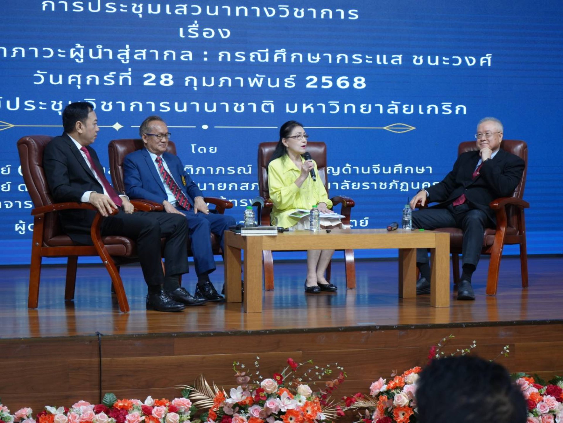 มหาวิทยาลัยเกริกได้ตระหนักถึงความสำคัญของ การพัฒนาภาวะผู้นำ โดยก่อนหน้านี้ได้จัดตั้ง สถาบันพัฒนาภาวะผู้นำขึ้น โดยมี ดร.สุทธศรี วงษ์สมาน อดีตปลัดกระทรวงศึกษาธิการ และ อดีตอธิการสภาการศึกษาแห่งชาติ เป็นผู้อำนวยการสถาบันฯ โดยมุ่งเน้นการสร้างและพัฒนาผู้นำทุกระดับด้วยความมุ่งมั่นที่จะปลูกฝังและพัฒนาศักยภาพคนรุ่นใหม่สู่การเป็นผู้นำที่มีคุณภาพเพื่อเป็นกำลังสำคัญในการพัฒนาประเทศ งานเสวนาวิชาการ การพัฒนาภาวะผู้นำสู่สากล ครั้งนี้ได้รับเกียรติจากวิทยากรที่ทรงคุณวุฒิ มากด้วยประสบการณ์ ตลอดจนมีความรู้ความสามารถและมีผลงานประจักษ์เป็นที่ยอมรับอย่างกว้างขวาง ได้แก่ ศาสตราจารย์ (พิเศษ) วิบูลย์ ตั้งกิตติภาภรณ์ ผู้เชี่ยวชาญด้านจีนศึกษา ศาสตราจารย์ ดร.ฐาปนา บุญหล้า อุปนายกสภามหาวิทยาลัยราชภัฏนครศรีธรรมราช รองศาสตราจารย์ ดร. อนันต์ บุญสนอง ผู้ทรงคุณวุฒิ ร่วมการอภิปรายบนเวทีโดยประเด็นการอภิปรายครั้งนี้ คือ ภาวะผู้นำ : กรณีศึกษา กระแส ชนะวงศ์ ผู้ร่วมอภิปรายต่างมีการบอกเล่า แลกเปลี่ยนและถ่ายทอดองค์ความรู้ ตลอดจนแนวทางในการพัฒนาภาวะผู้นำให้มีความพร้อมในระดับสากลแล้ว ยังมุ่งหวังว่า การเสวนาวิชาการ การพัฒนาภาวะผู้นำสู่สากลในครั้งนี้ จะการถ่ายทอดความรู้จากการทำงานวิชาการและประสบการณ์ด้านต่างๆของวิทยากร สู่การถอดบทเรียน และนำไปต่อยอดพัฒนาสังคมและประเทศได้ต่อไป