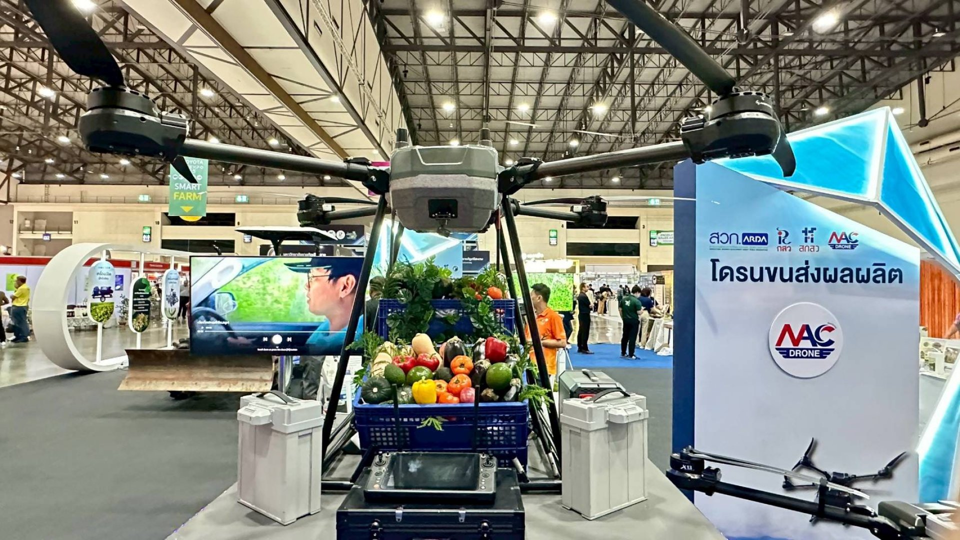 โซนที่ 2 Agri Tech เทคโนโลยีเกษตรสุดล้ำ ที่จะทำให้เกษตรไทยก้าวทันโลกและรักษ์โลกไปพร้อมกัน อาทิโดรนขนส่งสินค้าทางการเกษตร รับน้ำหนัก 70 กก. บินระยะไกล 3,000 เมตร ลดต้นทุนการขนส่ง 63% ลดความสูญเสียผลผลิต 10%โดรนกำจัดศัตรูมะพร้าว แก้ปัญหาแรงงานคน ฉีดพ่นได้ทั้งบนใบและใต้ใบ ลดต้นทุนได้ถึง 50%